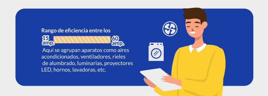 Engloba la cantidad de voltaje que pueden manejar las tomas eléctricas de seguridad VCP. Para una identificación oportuna, se emplea un conjunto de colores que se corresponde con la siguiente escala: